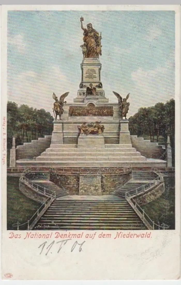 - (13142) Ansichtskarte, postcard, PPC - Rüdesheim am Rhein, Nationaldenkmal 1906