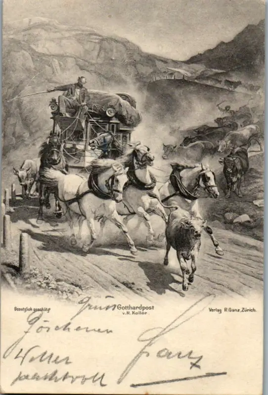 13432 - Schweiz - Gotthardpost , Postkutsche - gelaufen 1905