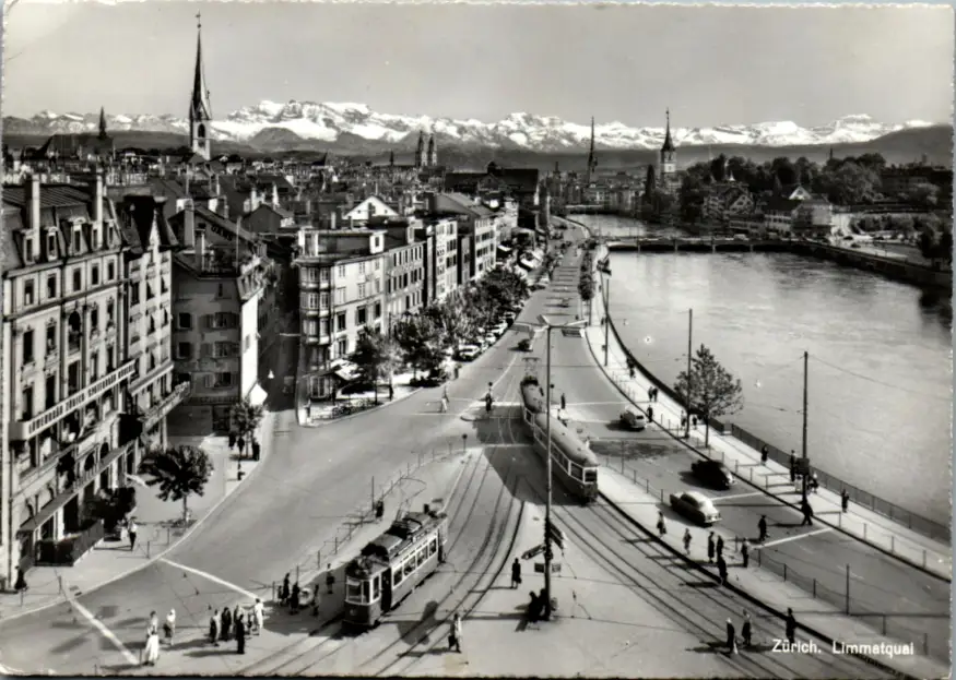 13512 - Schweiz - Zürich , Limmatquai , Straßenbahn - gelaufen 1961