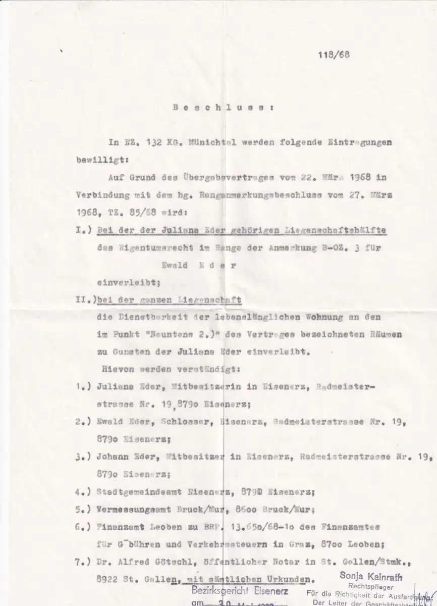 13727 - - Gerichtsbeschluß Bezirksgericht Eisenerz v. 1968
