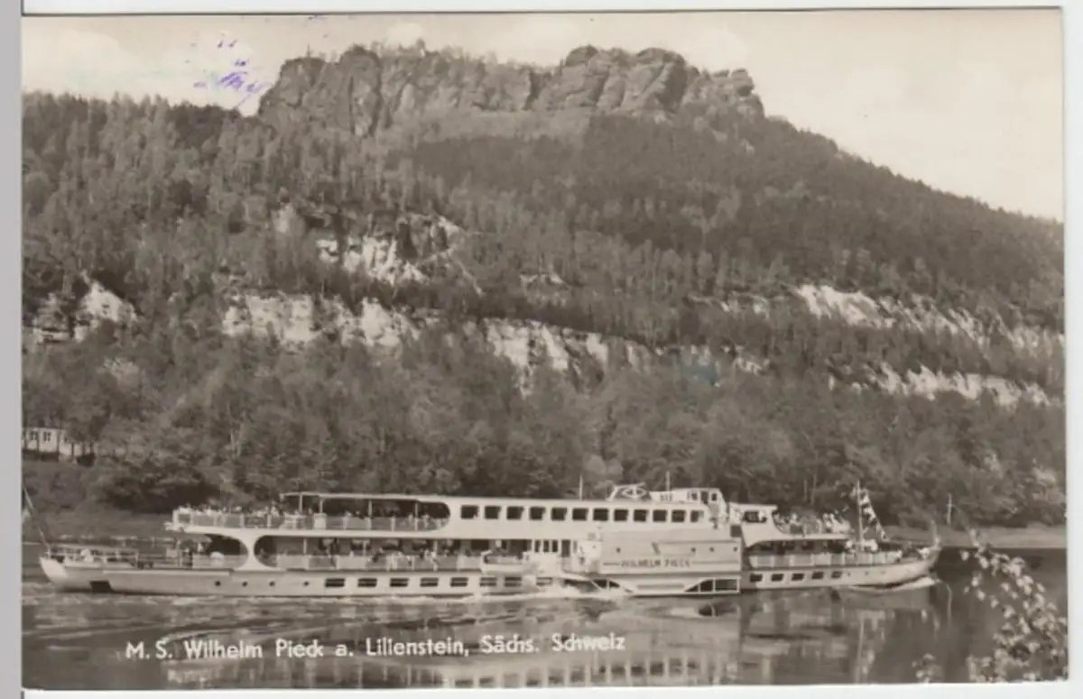 - (13787) Foto Ansichtskarte, postcard, PPC - Lilienstein, Sächs. Schweiz, MS "Wilhelm Pieck" 1967