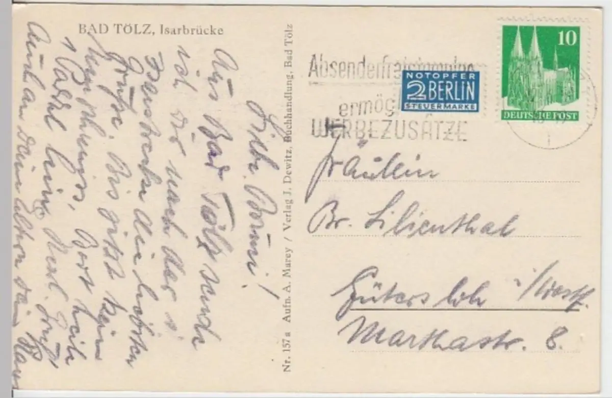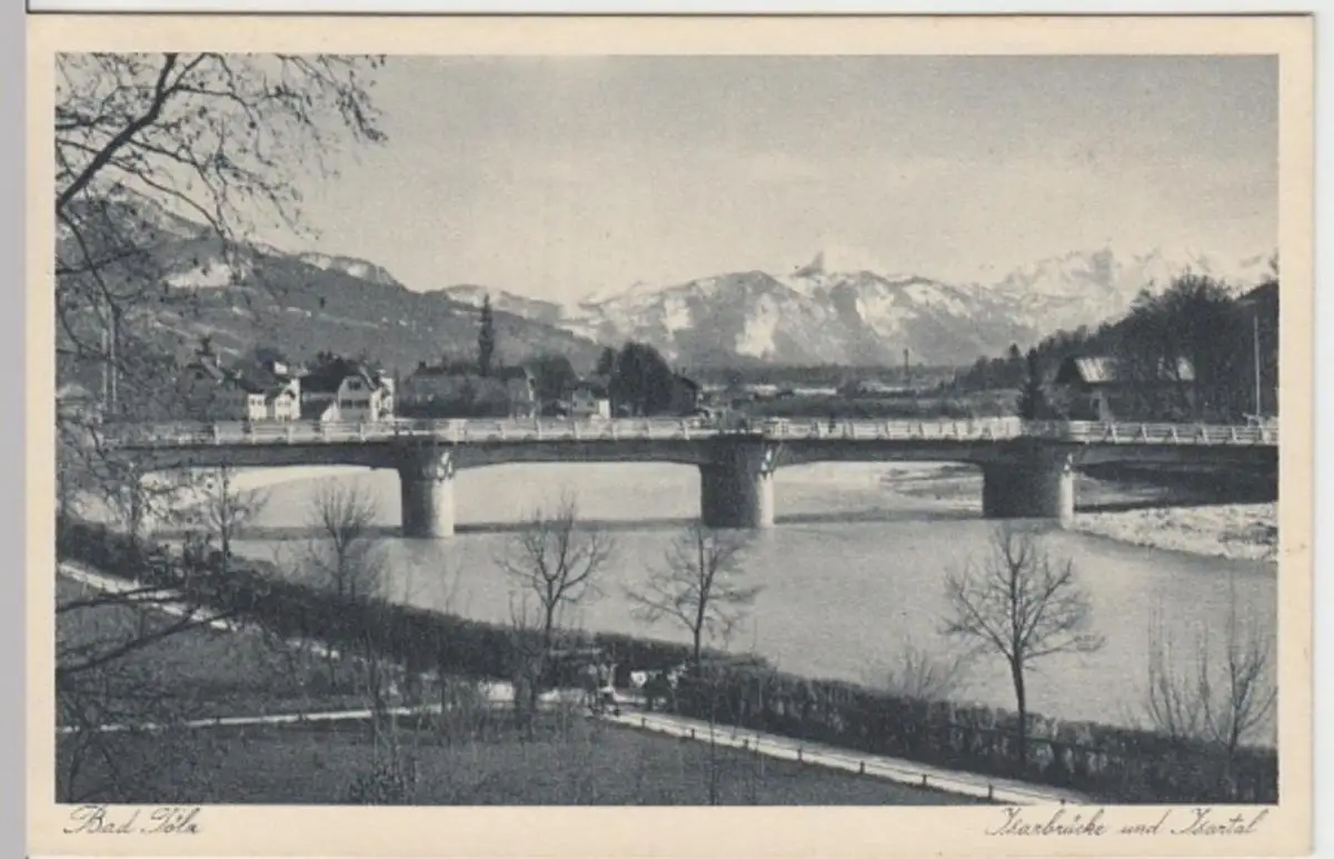 (13858) AK Bad Tölz, Isarbrücke, Isartal 1951