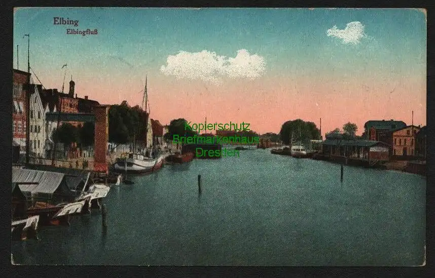 139848 Ansichtskarte Elbing Elblag Westpreußen Elbingfluß Feldpost 1917
