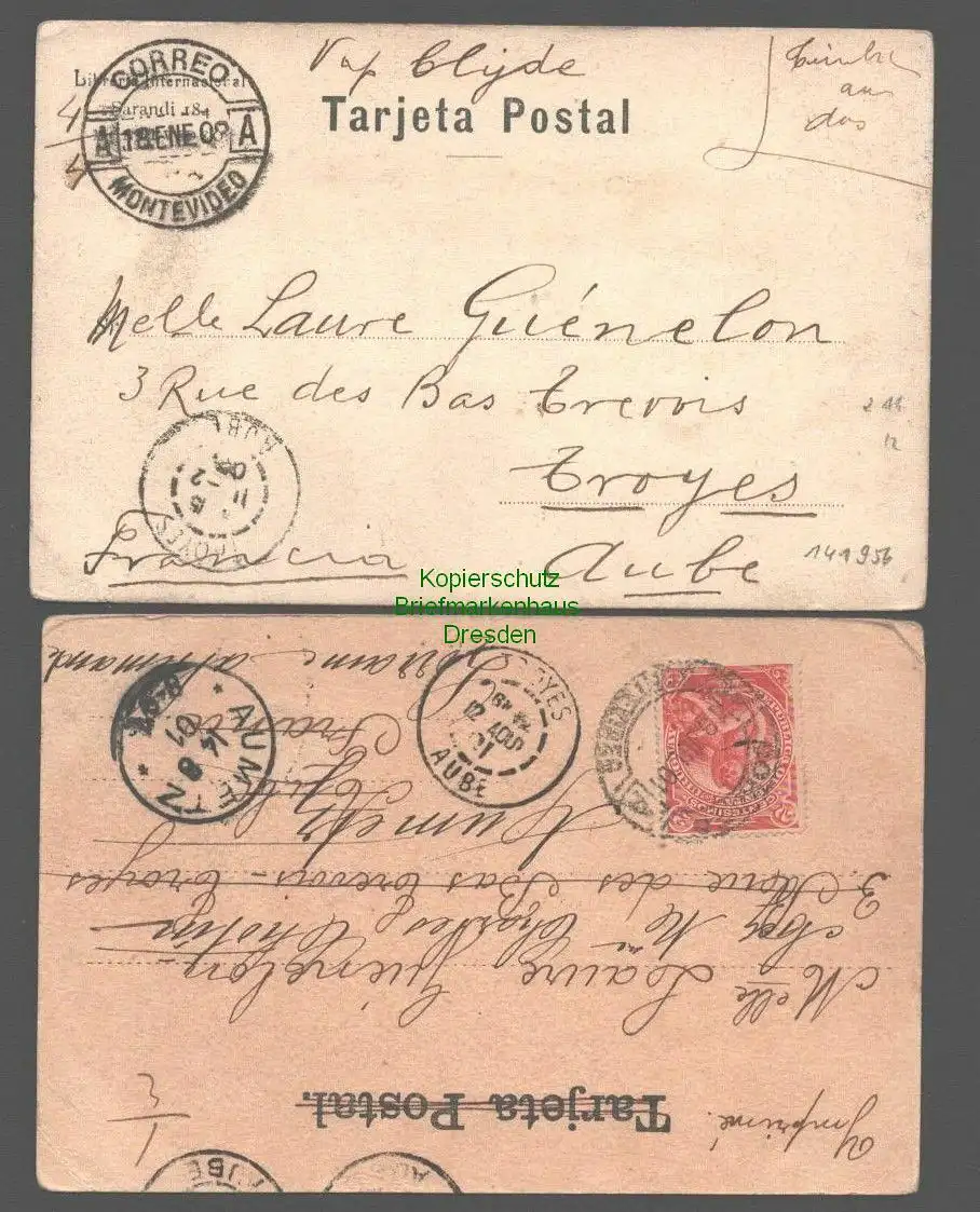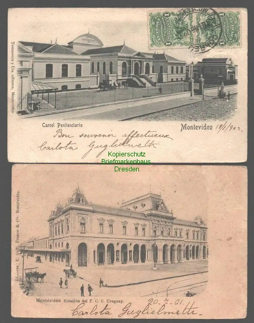 141956 2 Ansichtskarte Montevideo Uruguay Carcel Penitenciaria 1902 Estacion del F. C. C.