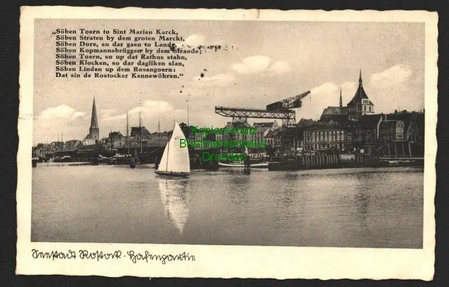 142875 Ansichtskarte Seestadt Rostock Hafenpartie 1940