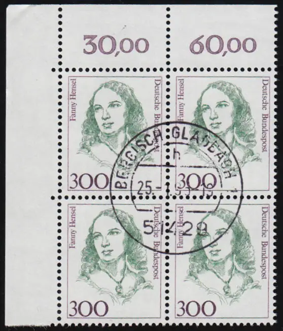 1433 Frauen 300 Hensel Eckrand-Viererblock oben links zentrischer Tages-O