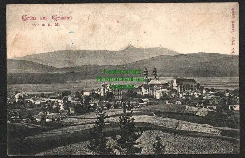 143304 Ansichtskarte Grüssau Krzeszow 1916 Panorama Feldpost Reserve Lazarett Landeshut