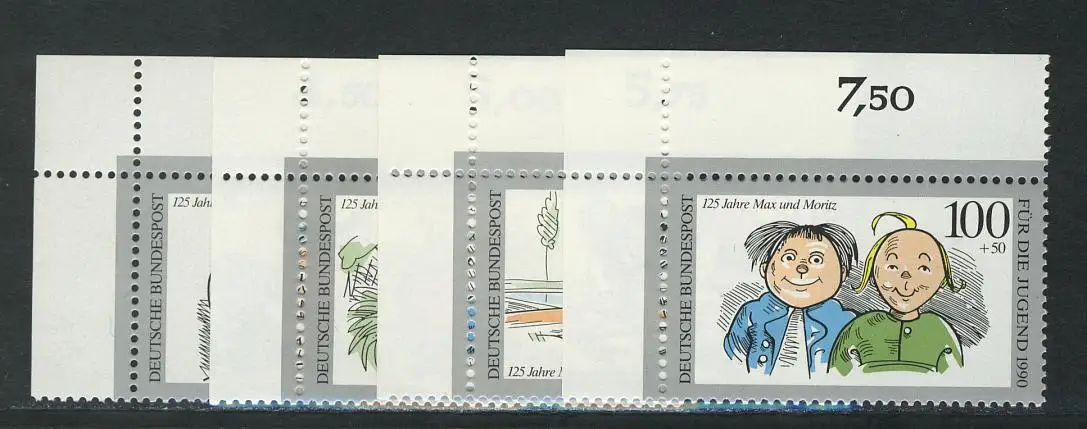 1455-1458 Jugend Max und Moritz 1990, Ecke o.l. Satz **