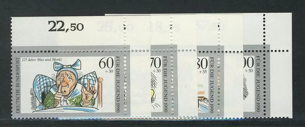 1455-1458 Jugend Max und Moritz 1990, Ecke o.r. Satz **
