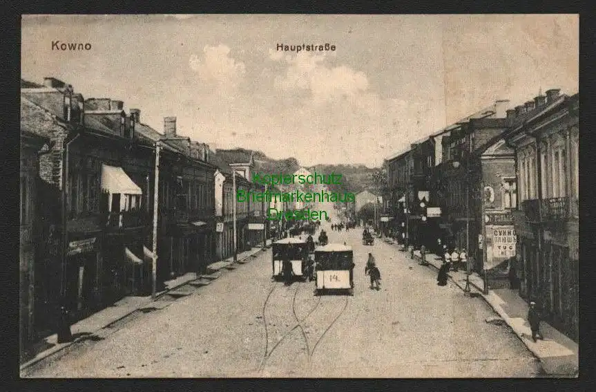 146399 Ansichtskarte Kaunas ????? Kowno 1915 Feldpost Hauptstraße Straßenbahn