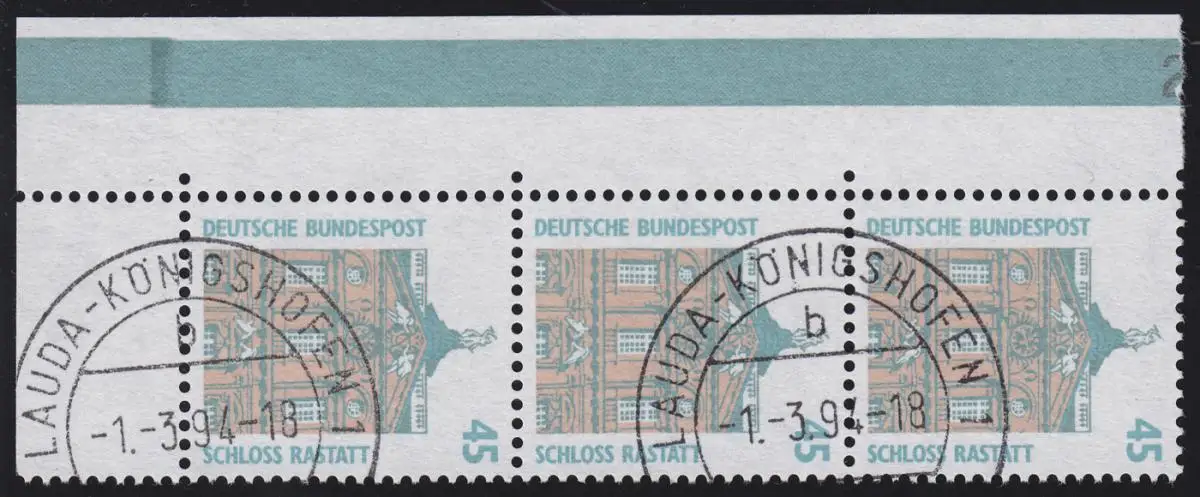 1468 SWK 45 Pf senkr. ER-3er-Streifen mit Naht, PLF Punkt über Figur, Feld 71, O
