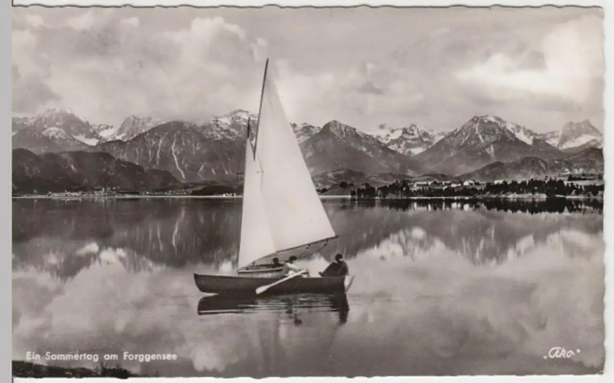 - (14708) Foto Ansichtskarte, postcard, PPC - Forggensee, Segelboot 1961