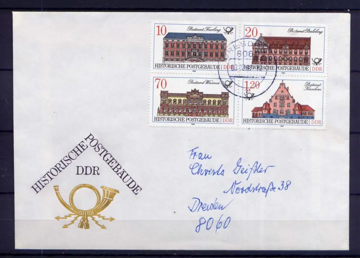 (1485) Brief DDR Nr.3067/70 Viererblock