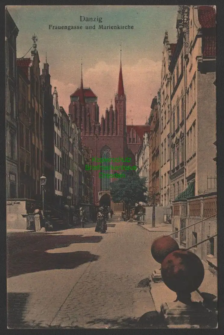 149204 Ansichtskarte Danzig Frauengasse und Marienkirche um 1915