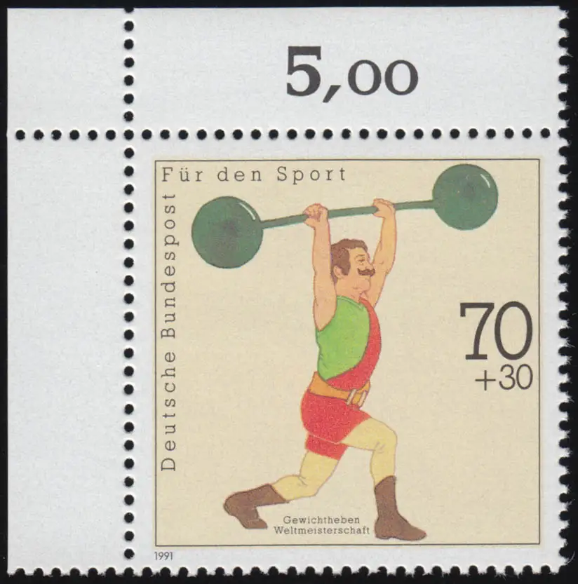 1499 Sporthilfe 70+30 Pf Gewichtheben ** Ecke o.l.