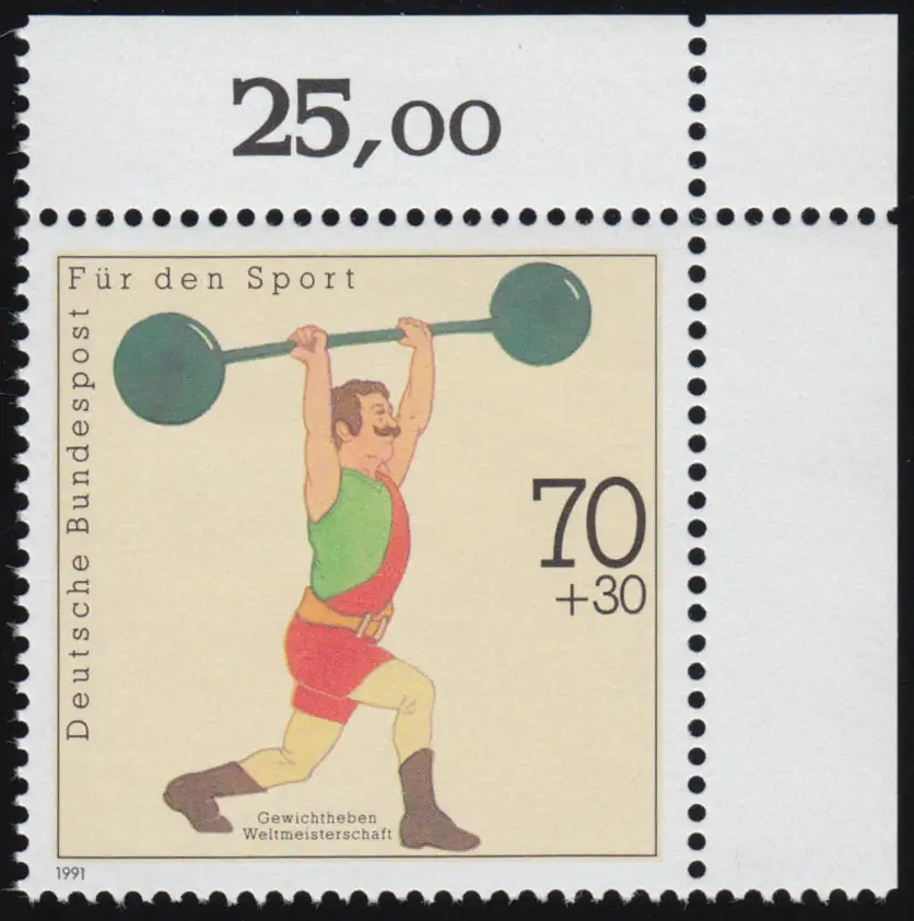 1499 Sporthilfe 70+30 Pf Gewichtheben ** Ecke o.r.