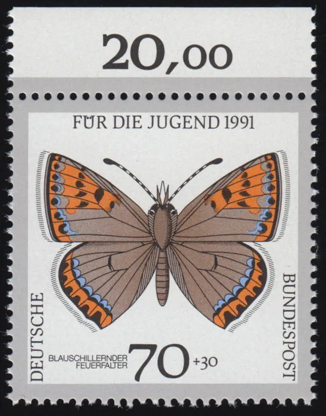 1515 Jugend Schmetterlinge 70+30 Pf ** Oberrand