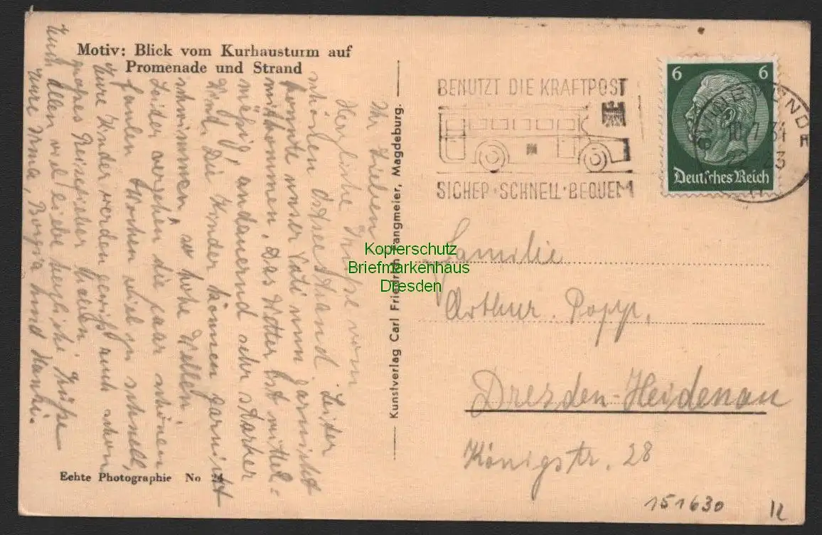 151630 Ansichtskarte Aus deutschen Landen Ostseebad Swinemünde 1934 Promenade und Strand