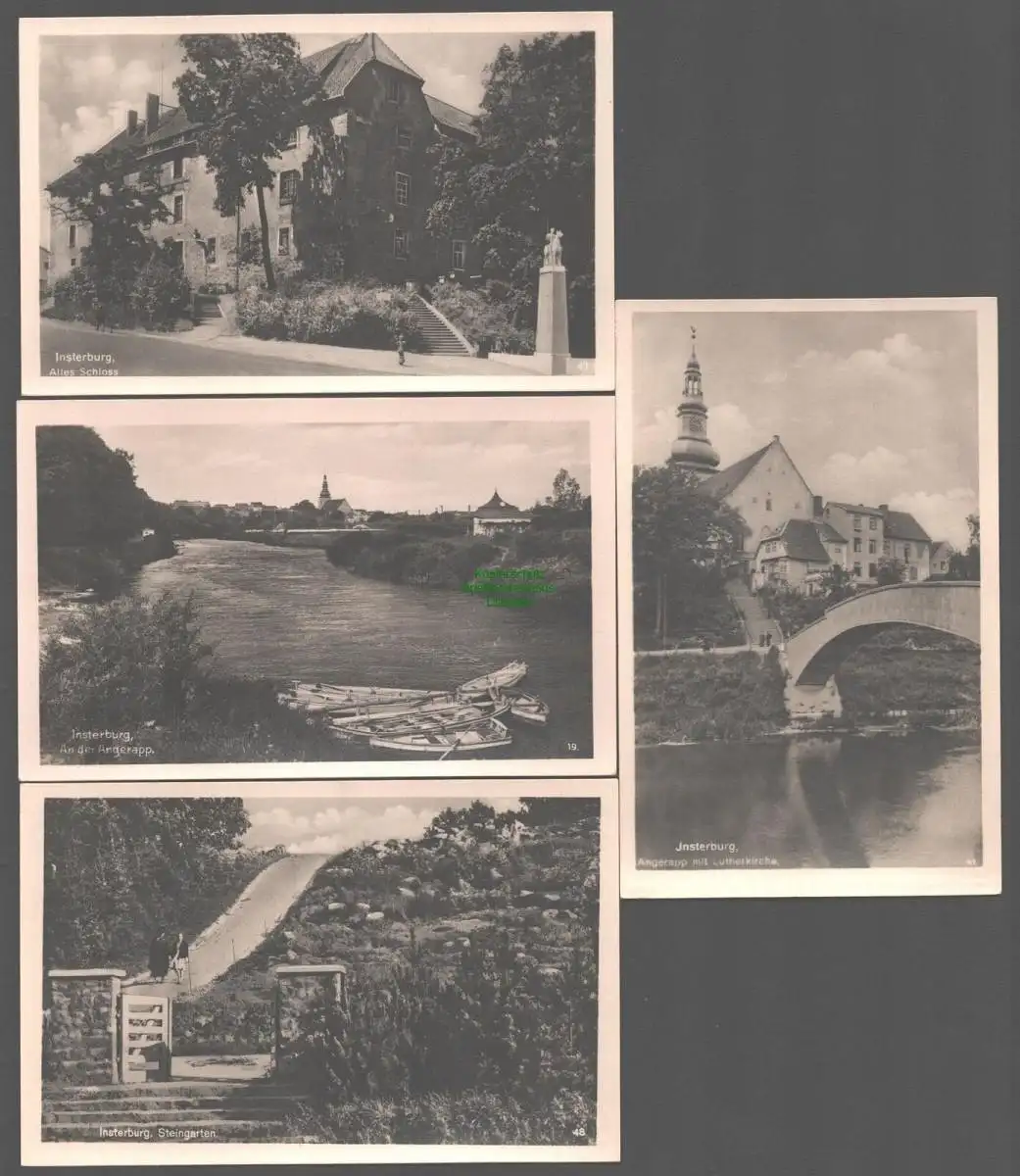 152300 4 Ansichtskarte Insterburg Ostpreußen um 1935 Angerapp Altes Schloss Lutherkirche Steingarten