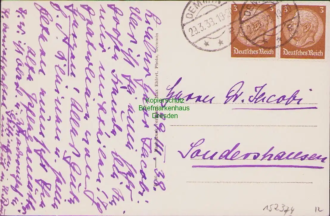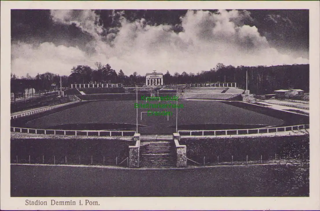152374 Ansichtskarte Demmin i. Pom. Stadion 1938