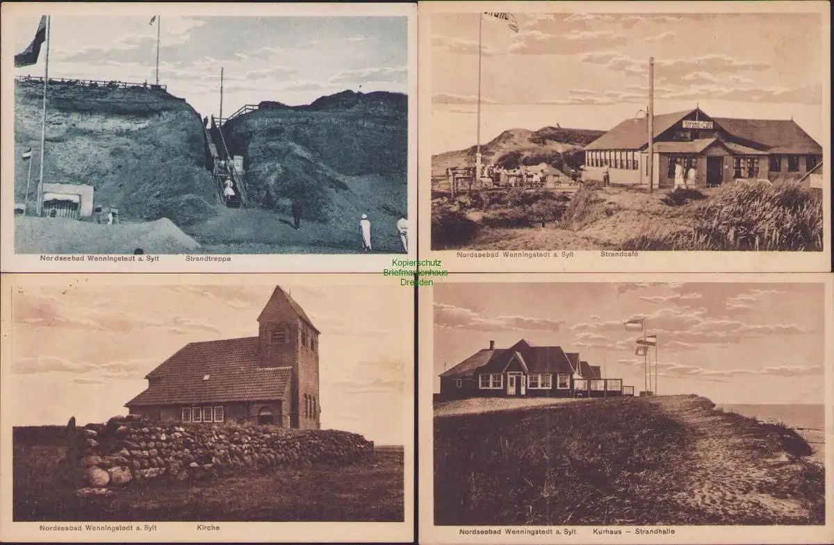 152587 4 Ansichtskarte Wenningstedt Sylt Strandcafe Kurhaus Strandhalle Strandtreppe Kirche um 1925