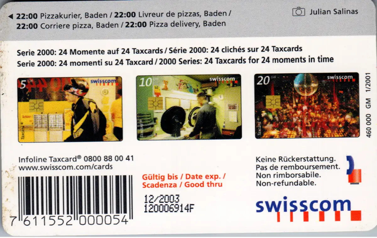15424 - Schweiz - Swisscom Taxcard , Pizzakurier Baden