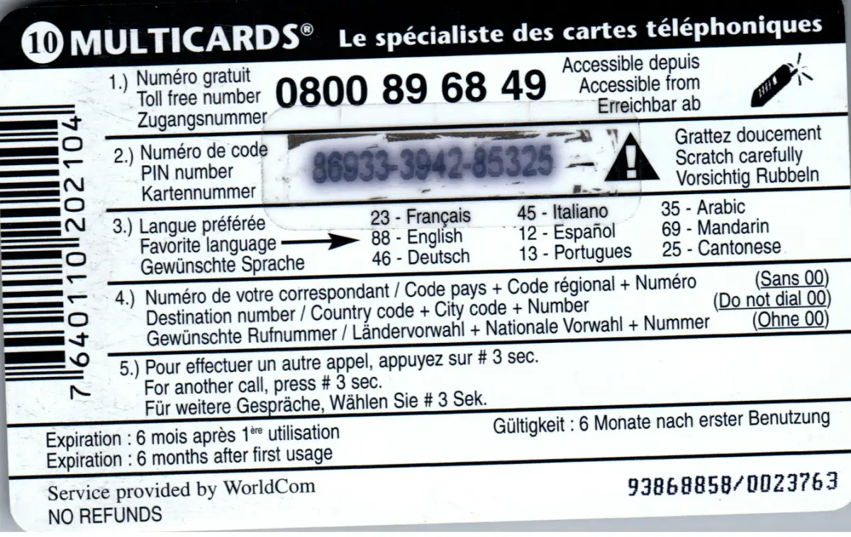 15443 - Schweiz - World Com Excharge Card , Multicards
