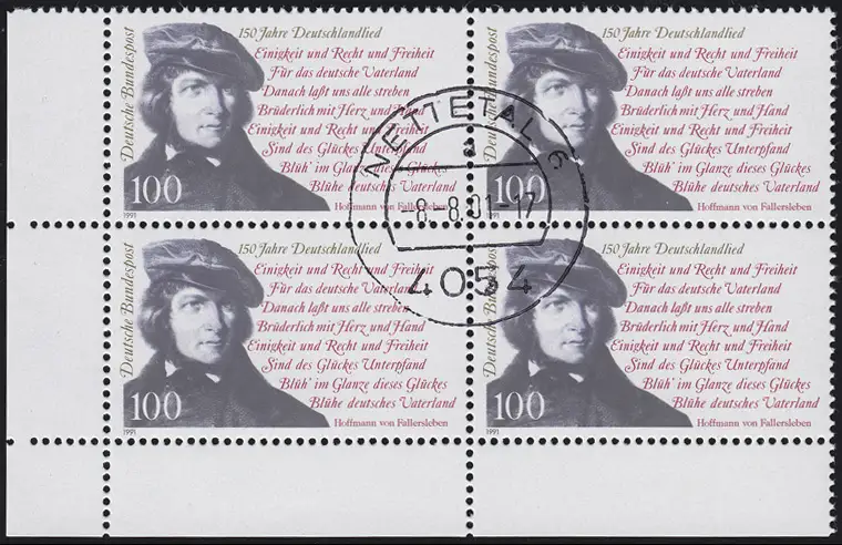 1555 Deutschlandlied: ER-Vbl unten links zentrischer Vollstempel NETTETAL 8.8.91