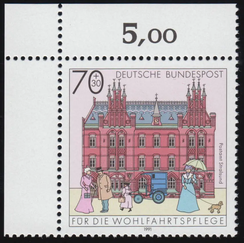 1565 Postamt Stralsund 70+30 Pf ** Ecke o.l.