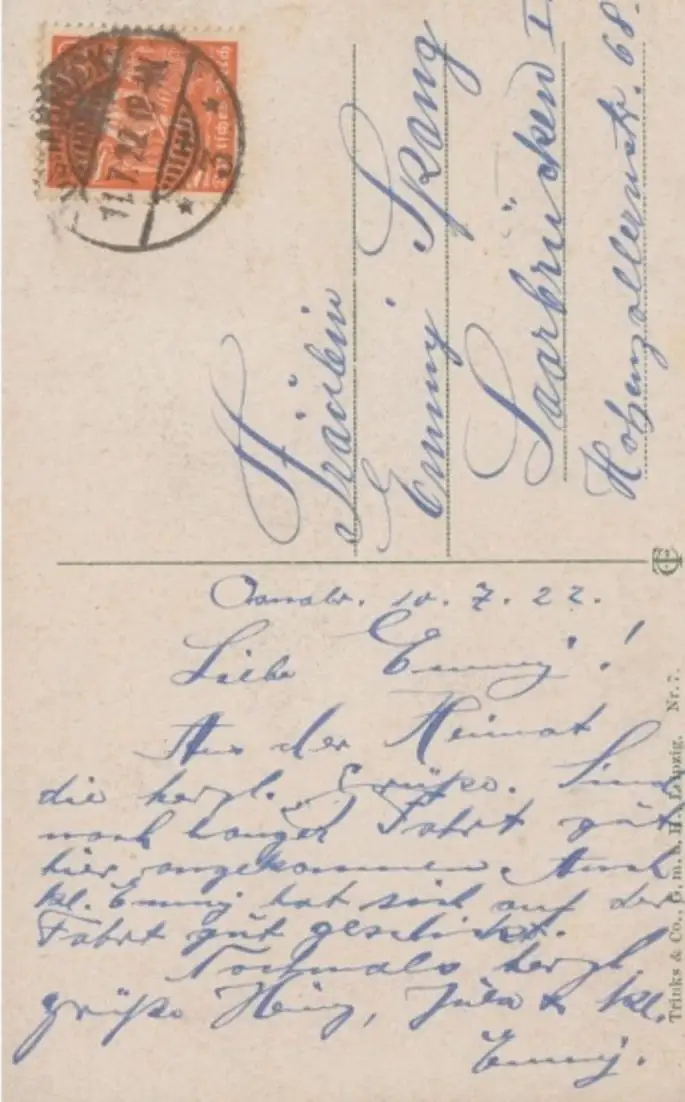 Diese Postkarte wurde von meinem Opa geschrieben und versendet. Ein Stück Erinnerung von fast 100 Jahren
