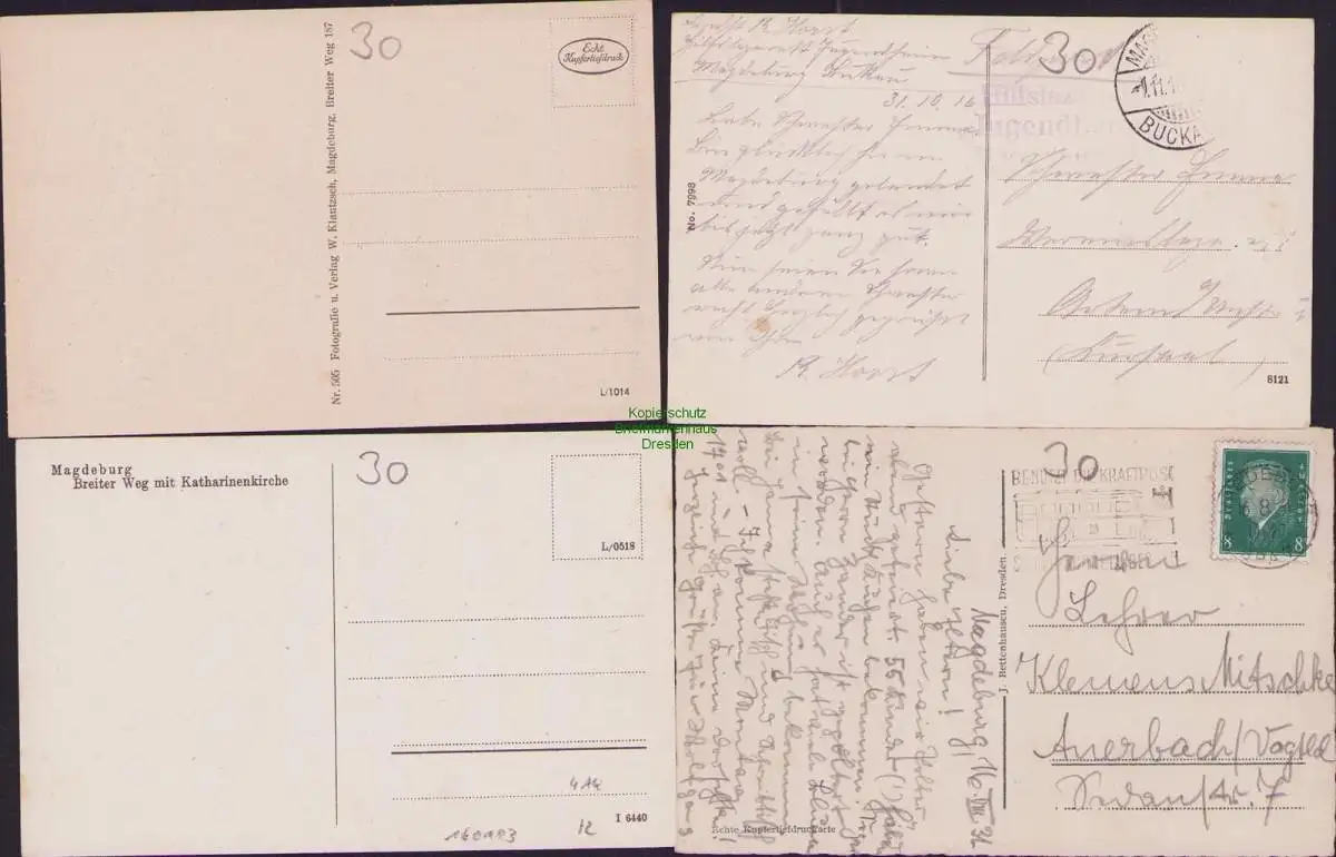 160103 4 Ansichtskarte Magdeburg Breiter Weg 1916 Feldpost Lazarett Katharinenkirche