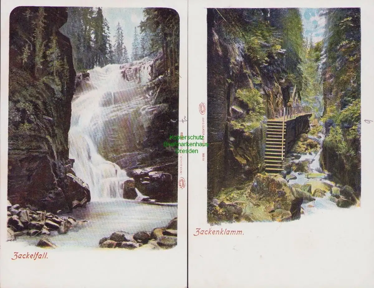 160295 2 Ansichtskarte Zackelfall Zackenklamm um 1900