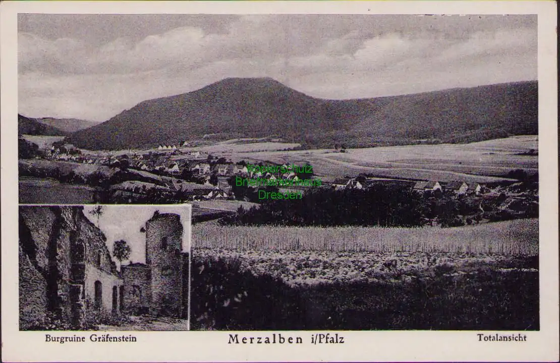 160330 Ansichtskarte Burgruine Gräfenstein Merzalben i/Pfalz Totalansicht um 1940