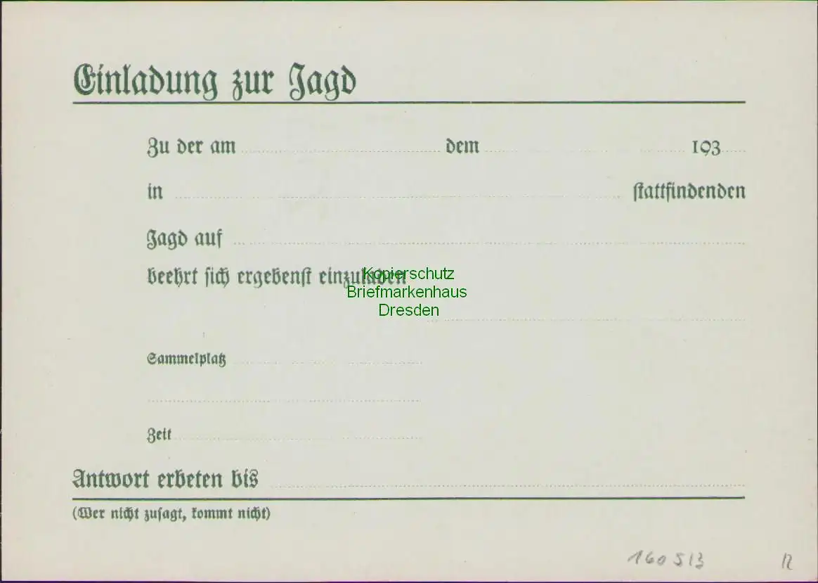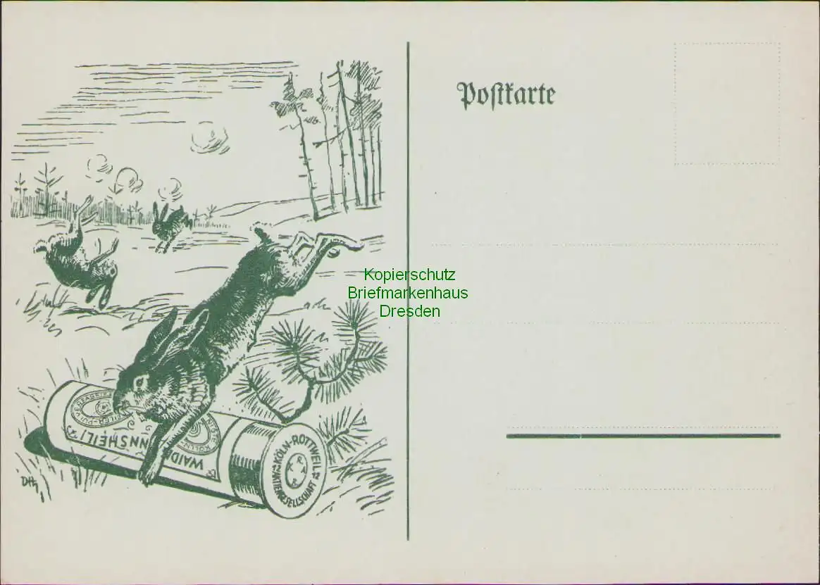 160513 Ansichtskarte Einladung zur Jagd Köln Rottweil AG Waidmannsheil Hase Hasenjagd um 1935