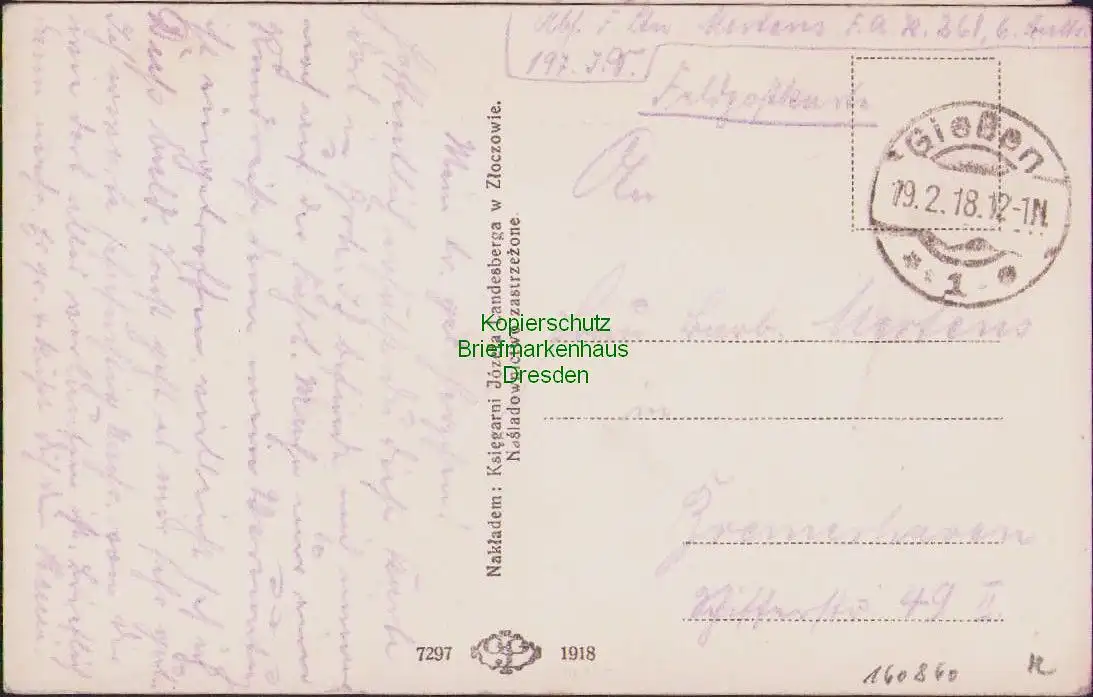 160860 AK Solotschiw ZLOCZOW Ul. Mickiewicza Mickiewiczgasse 1918 Feldpost