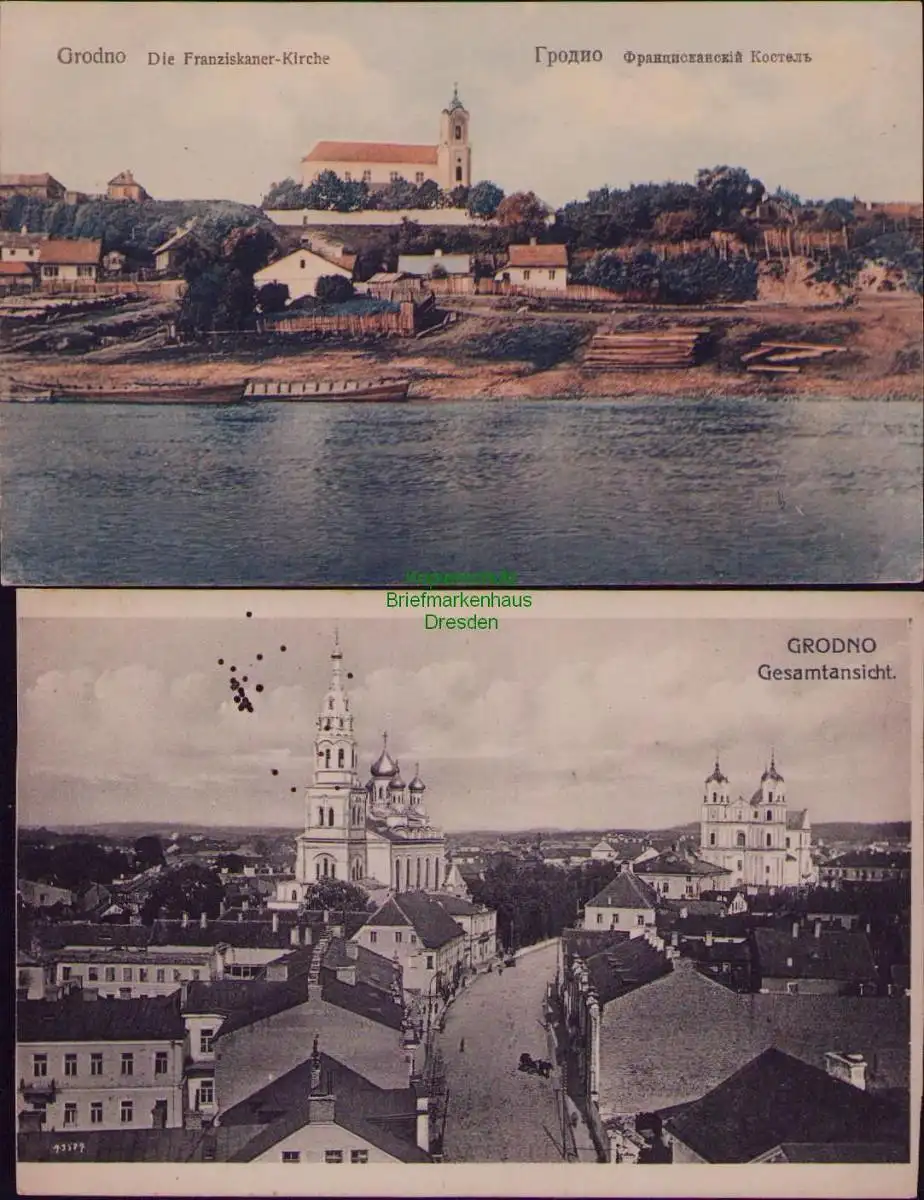 162830 2 AK Grodno Die Franziskaner-Kirche Gesamtansicht 1916 1917 Feldpost