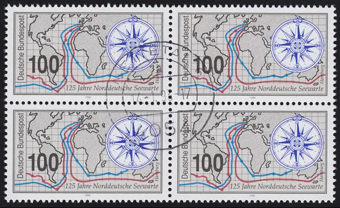 1647 Seewarte Hamburg: Viererblock, zentrischer Vollstempel NETTETAL 14.1.93