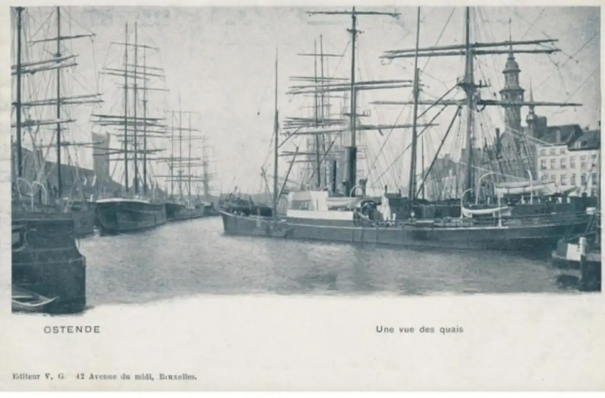 (1654) AK Segelschiffe im Hafen von Ostende um 1905