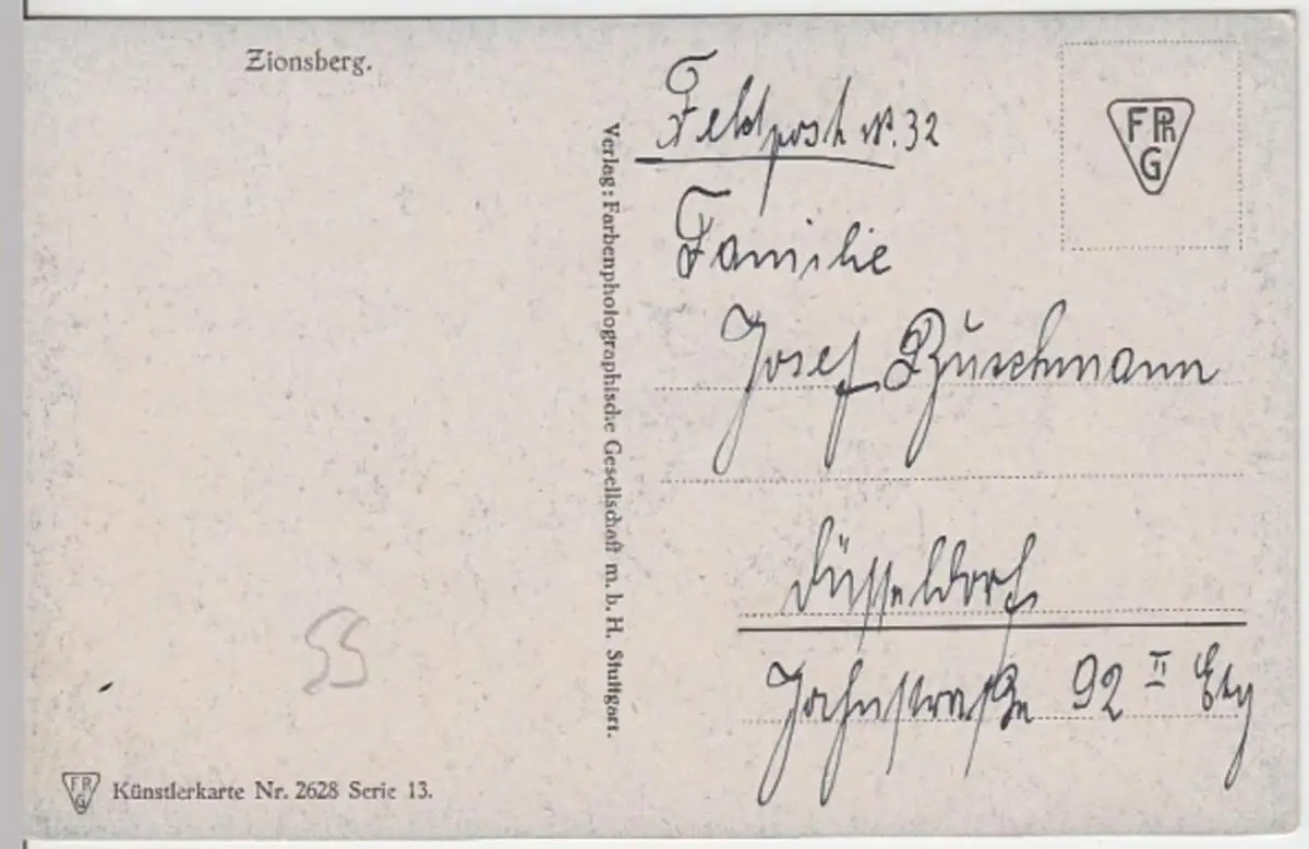 - (16568) Ansichtskarte, postcard, PPC - Jerusalem, Zionsberg, Feldpost vor 1945