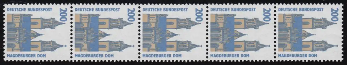 1665II SWK 200 Pf, 5er-Streifen + neue senkrechte Nr., postfrisch **