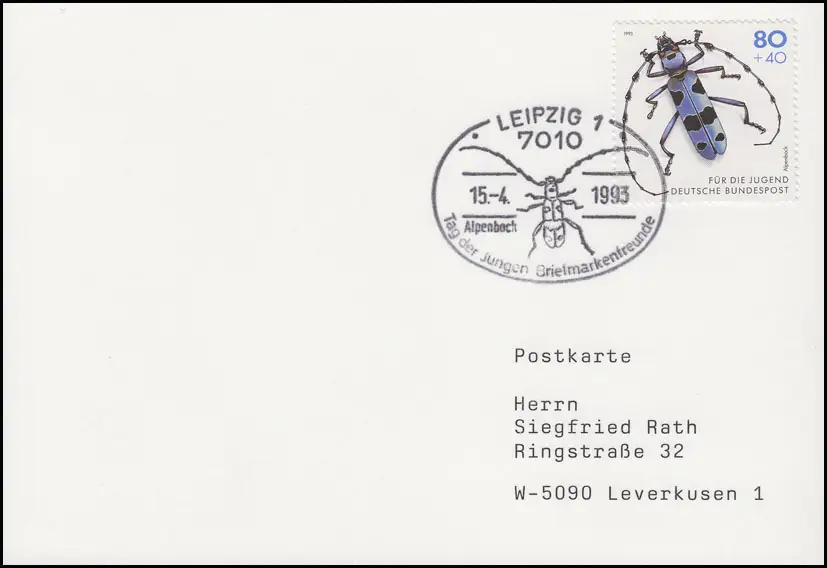 1666 Gefährdete Käfer Alpenbock EF FDC-PK ESSt Leipzig Alpenbock 15.4.1993