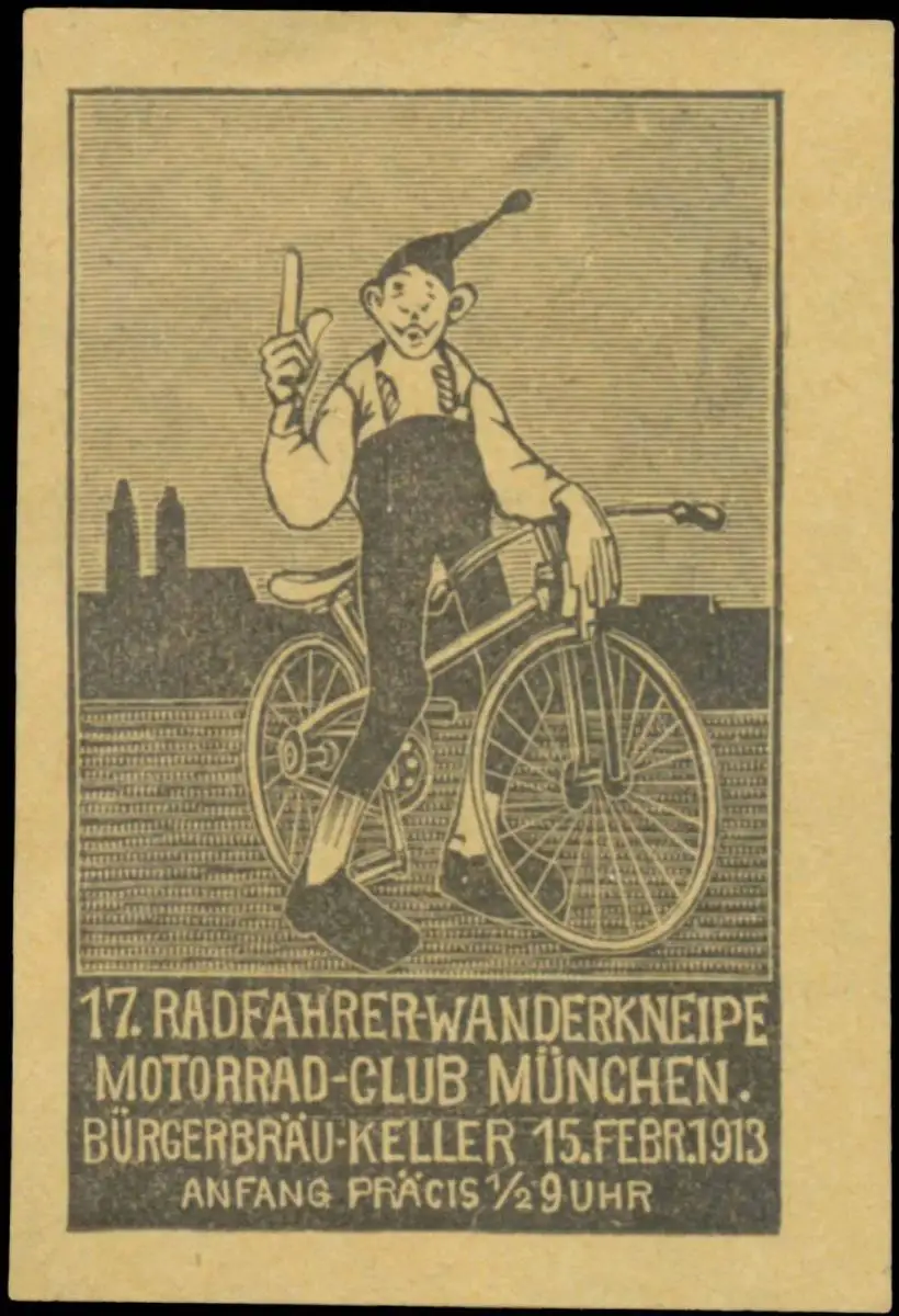 13. Februar 1913, Brauerei Bürgerbräu-Keller, Fahrrad, Größe/Zustand: 6x4 , guter Zustand, Original alte Reklamemarke die seinerzeit für die Werbung benutzt wurde