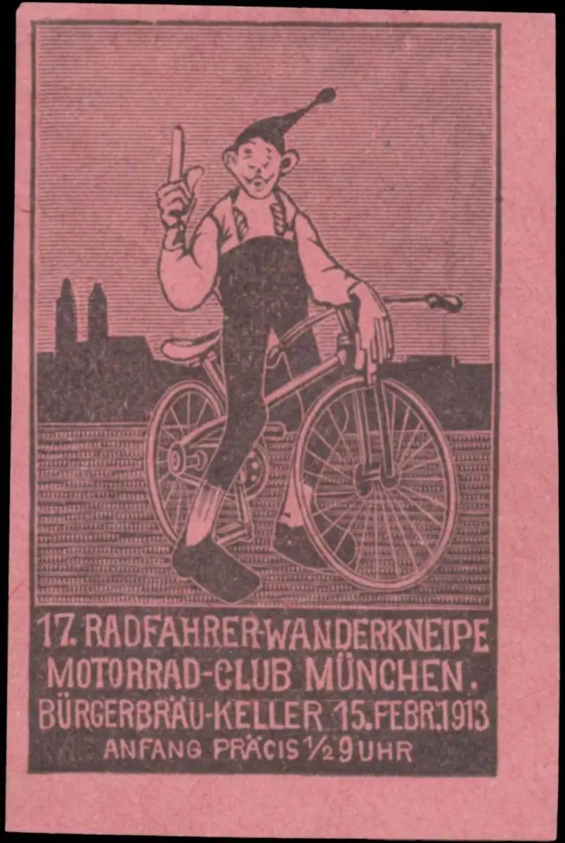 13. Februar 1913, Brauerei Bürgerbräu-Keller, Fahrrad, Größe/Zustand: 6x4 , guter Zustand, Original alte Reklamemarke die seinerzeit für die Werbung benutzt wurde