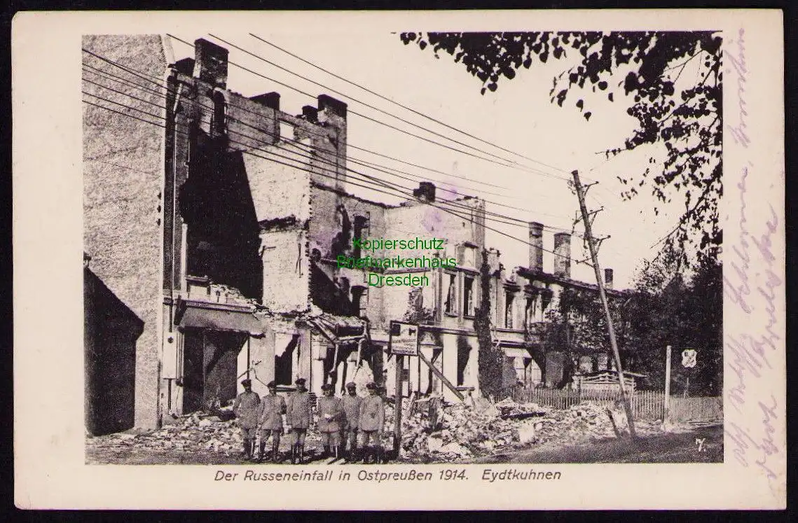 172155 Ansichtskarte Eydtkuhnen 1917 Feldpost Der Russeneinfall in Ostpreussen 1914