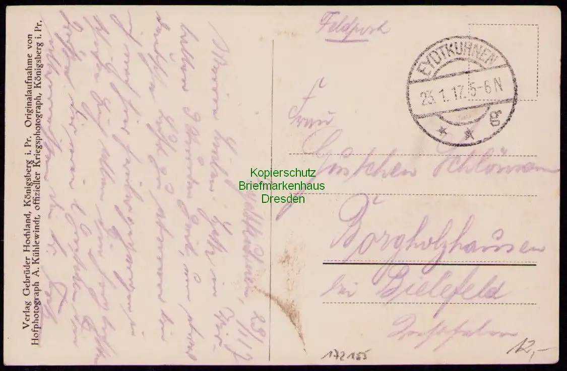 172155 AK Eydtkuhnen 1917 Feldpost Der Russeneinfall in Ostpreussen 1914