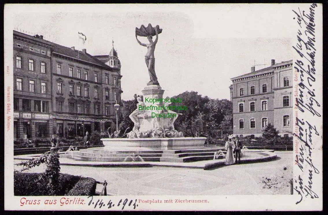172339 AK Görlitz 1902 Postplatz mit Zierbrunnen