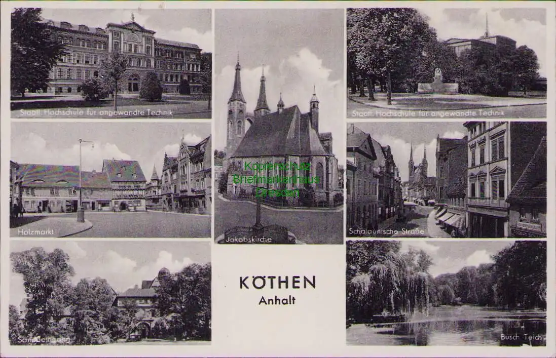 174624 Ansichtskarte Köthen Anhalt um 1935 Hochschule Holzmarkt Jacobskirche ...