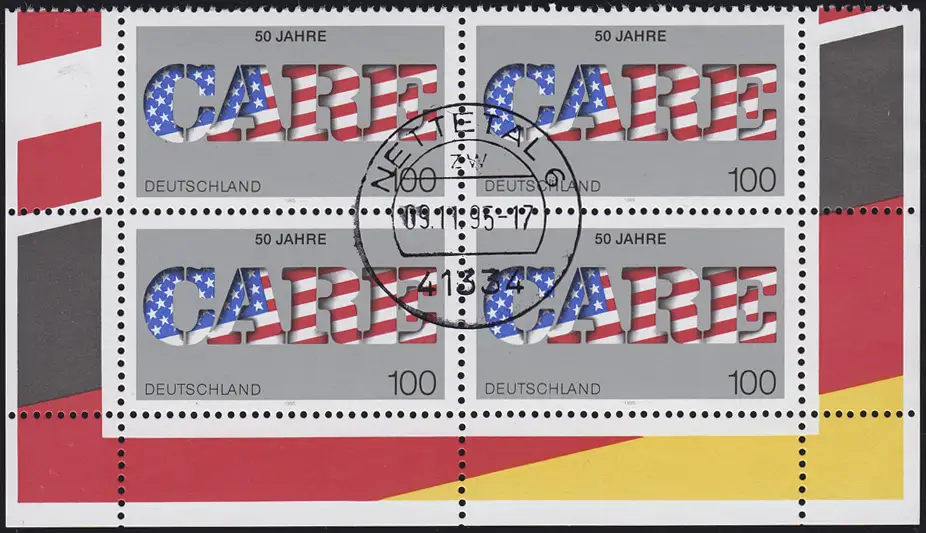 1829 Hilfsorganisation CARE: Viererblock unten, zentrischer Vollstempel NETTETAL