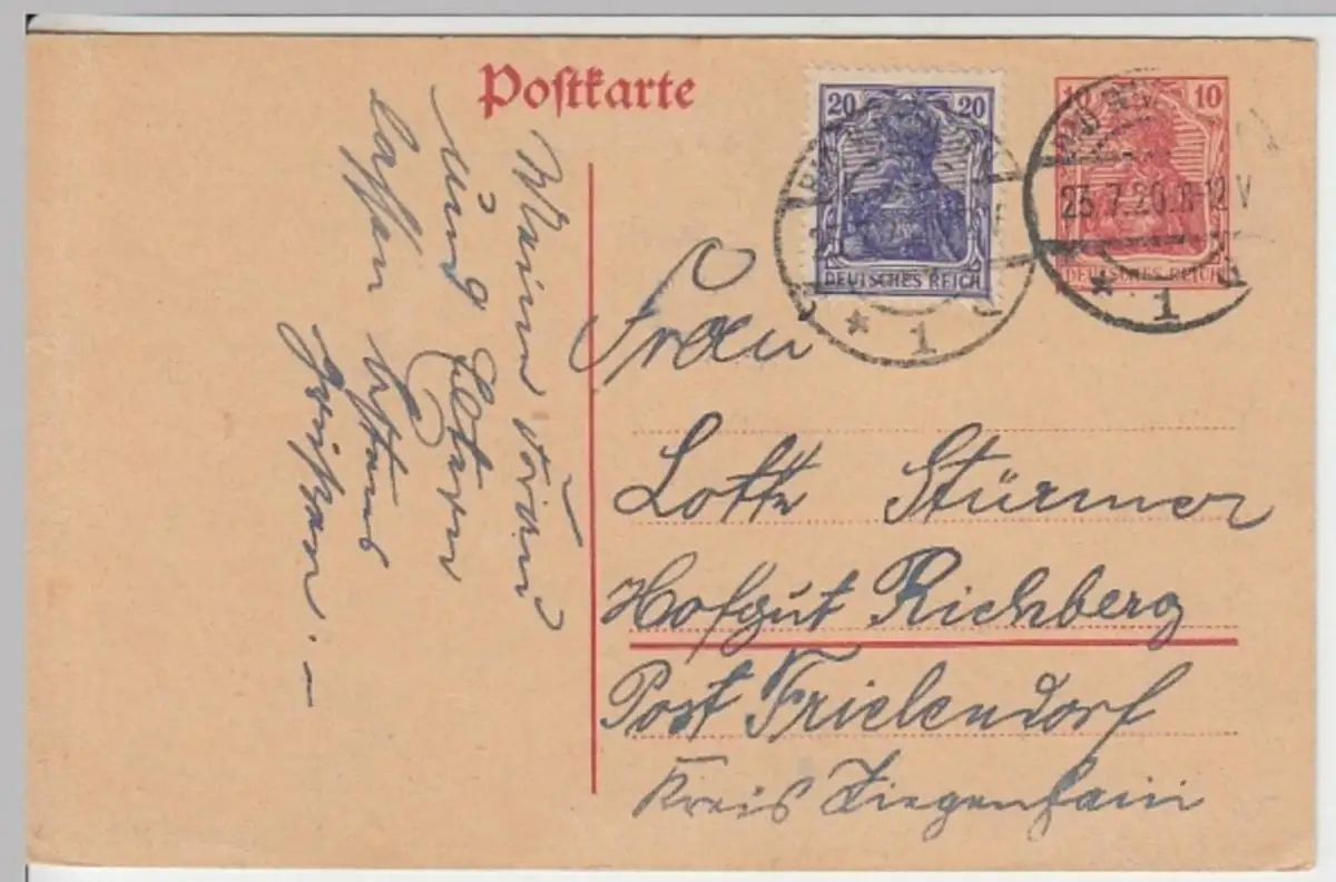 (18327) Ganzsache DR 1920 Zusatzfrankatur