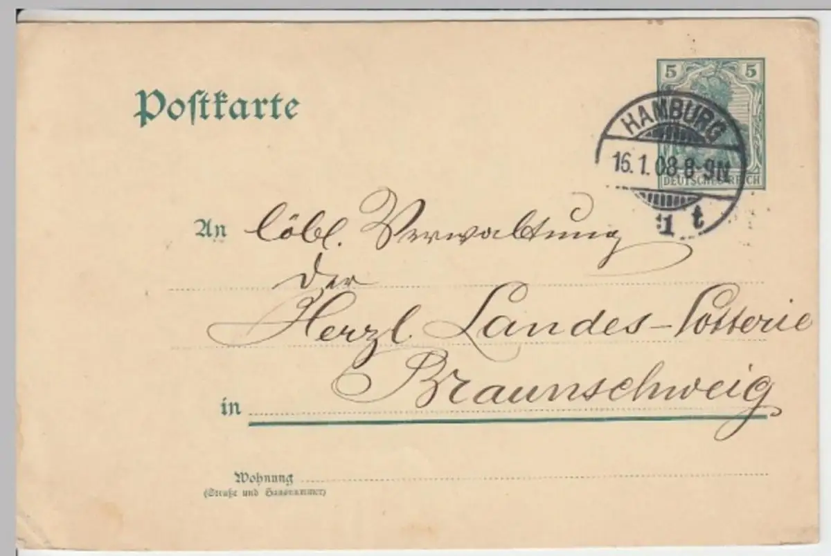 - (18330) Ganzsache DR Hamburg 1908